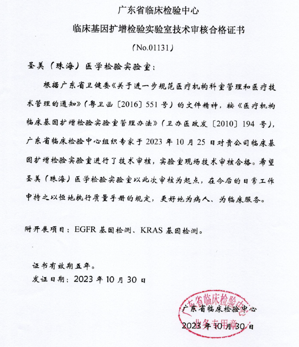 临床基因扩增检验实验室技术审核合格证书